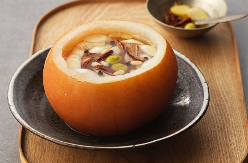 배숙은 배 안쪽 부분을 파내고 꿀과 도라지, 생강, 대추, 후추등을 넣어 푹 인힌다음 새어나온 즙과 익힌 과일을 함께 먹는 차입니다. 앞서 감기에 좋은 생강과 대추등이 다 같이 들어가니 말하지 않아도 감기에는 탁월한 효과가 있겠죠?